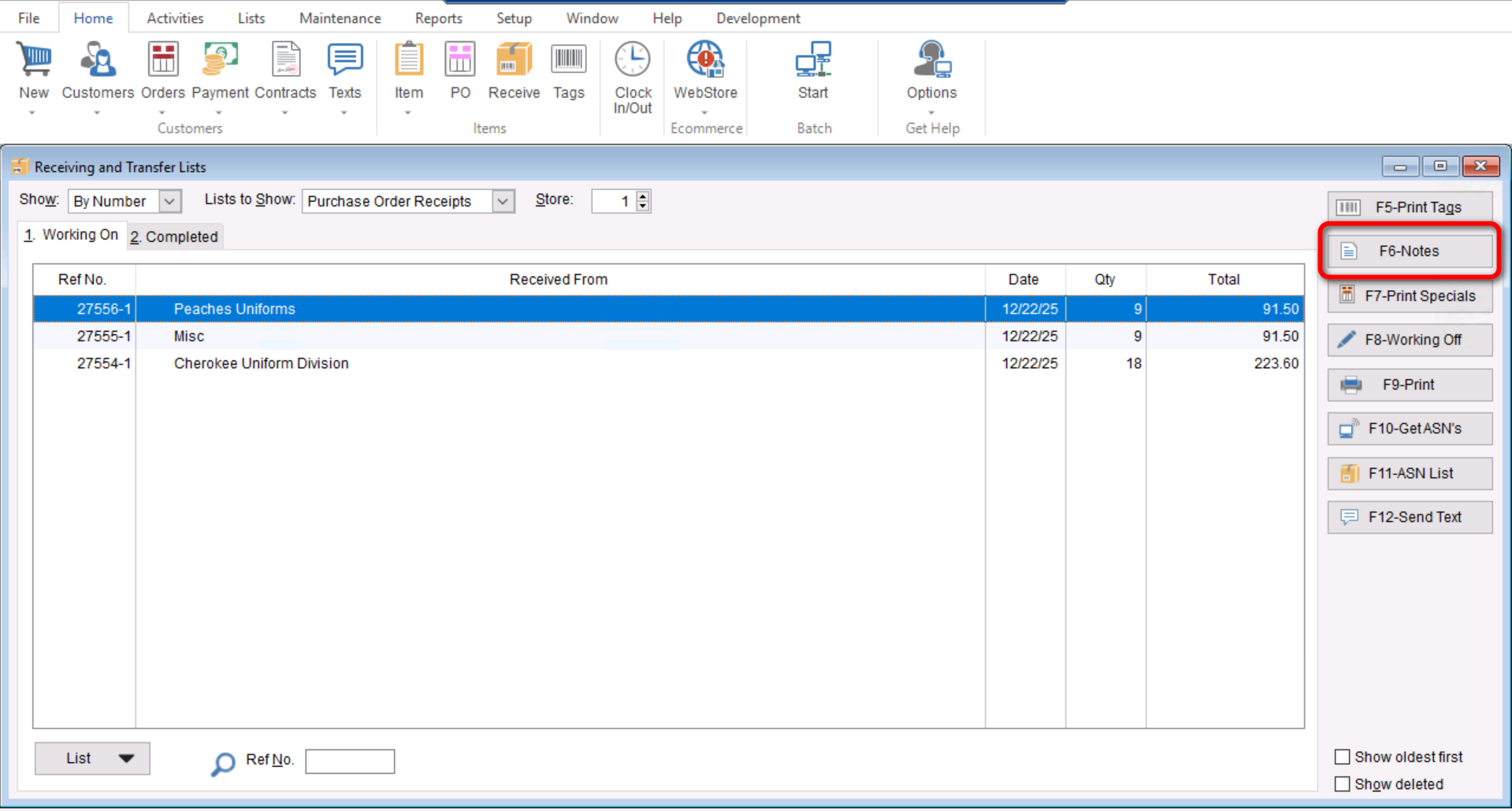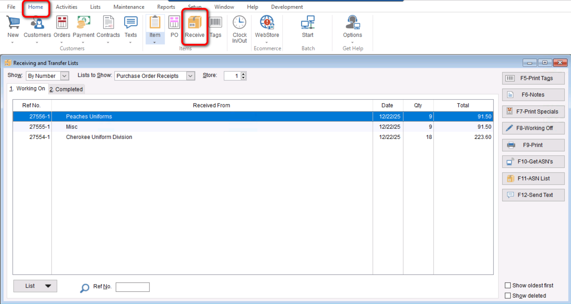 1. First you will go to “Home>Receive” to open the “Purchase Order Receipt” screen.