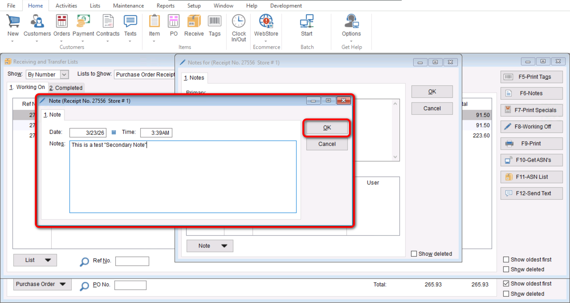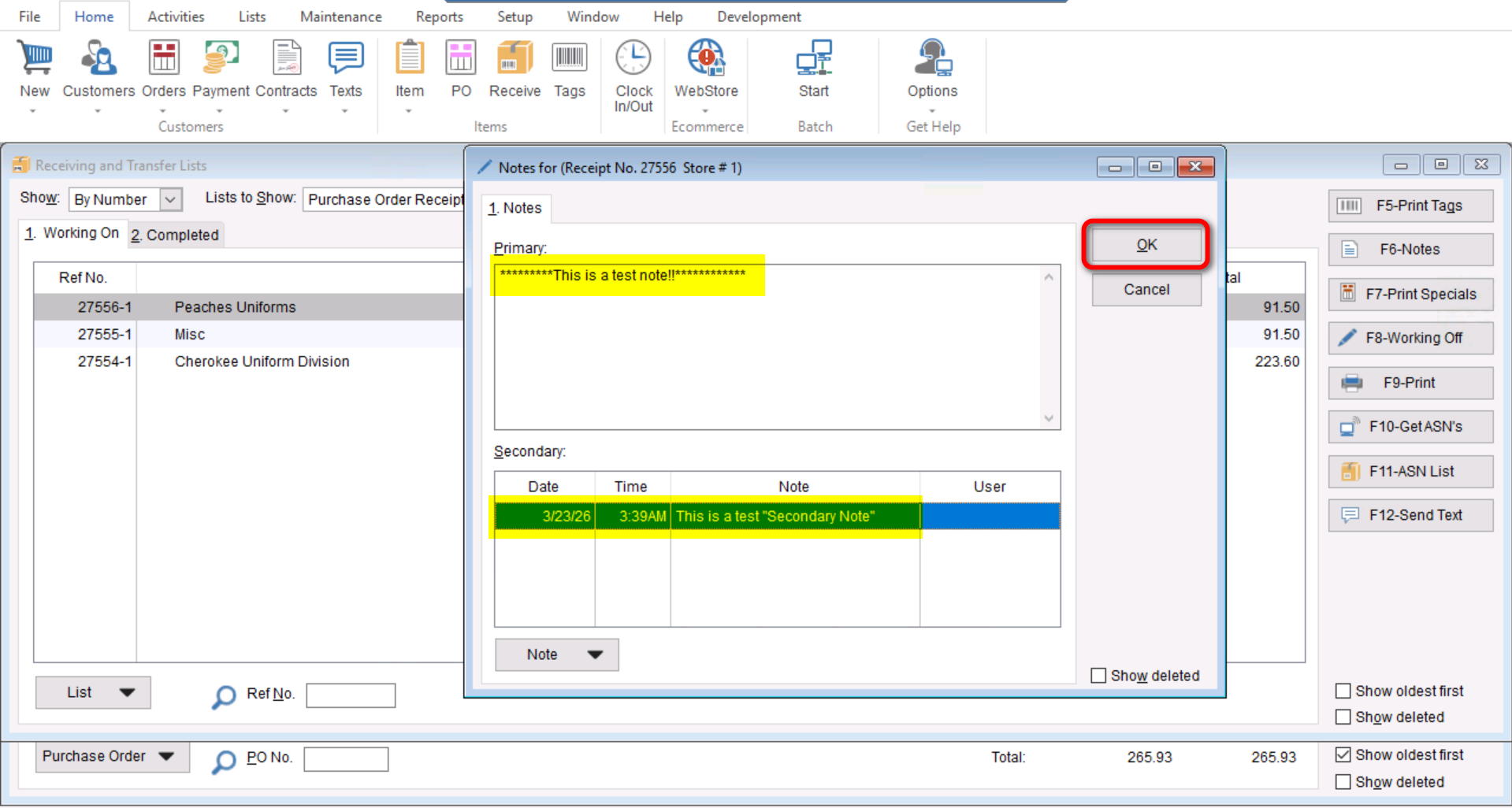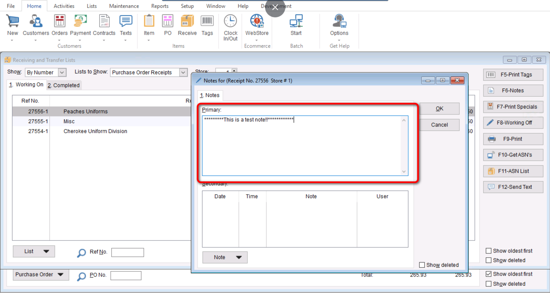 4. Enter any primary notes in the Primary Section. (Note that the primary section notes will not be Date or Time stamped.)