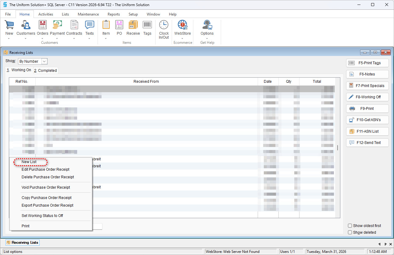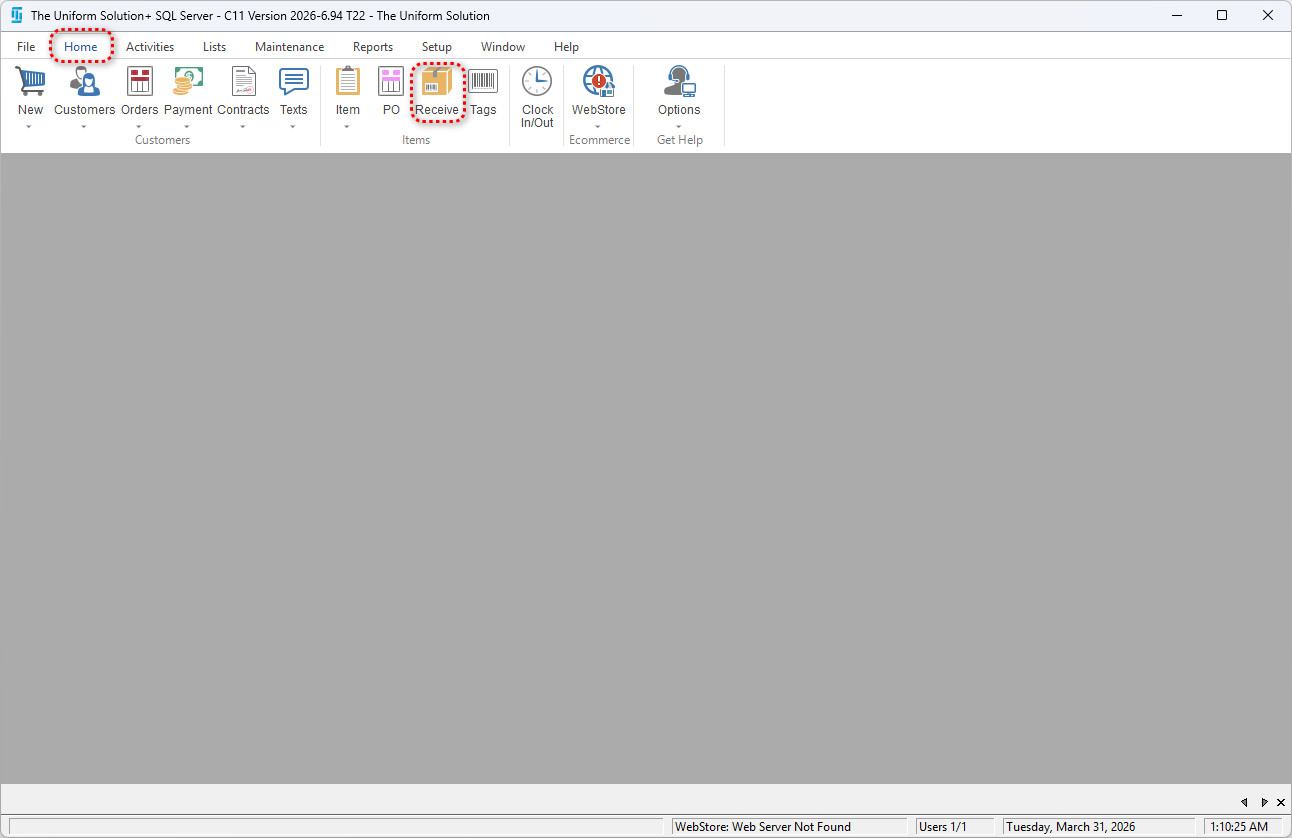 In The Uniform Solution, you can add items to a receiving list even when no purchase order exists. This is useful for: