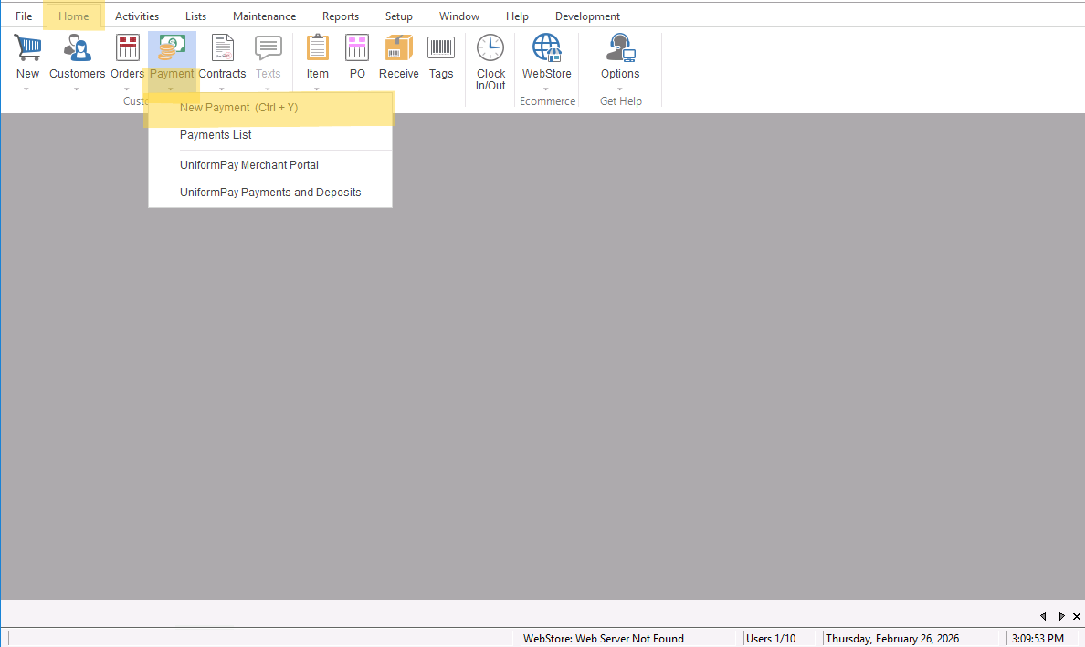 - You can now go to “Home>Payments>New Payments” to apply the payment to the invoice.