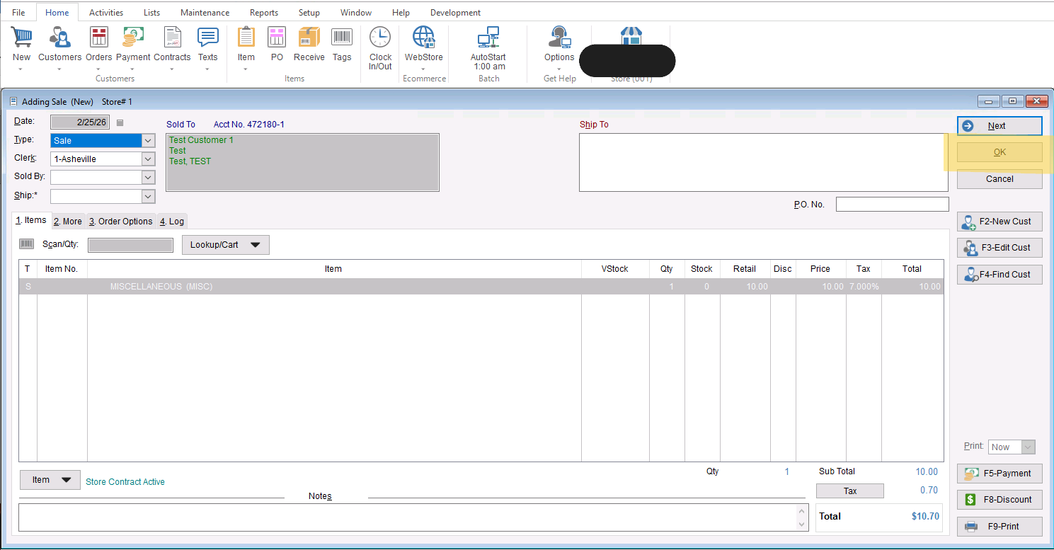 - Once you have your invoice created and your customer added to the sale you will be selecting “OK” to save the invoice into your sales list.