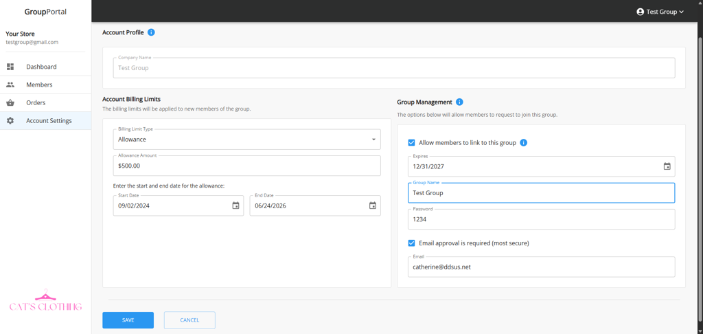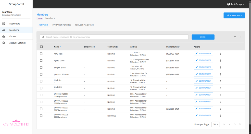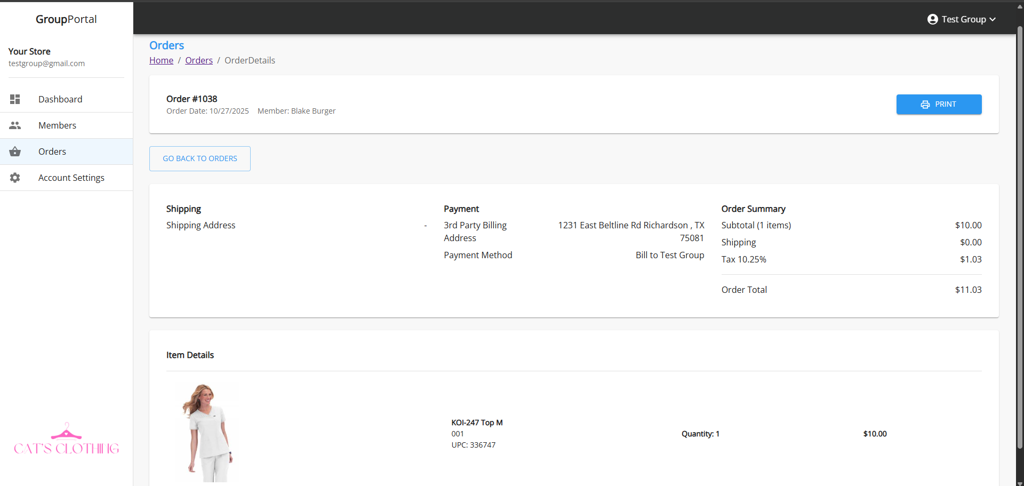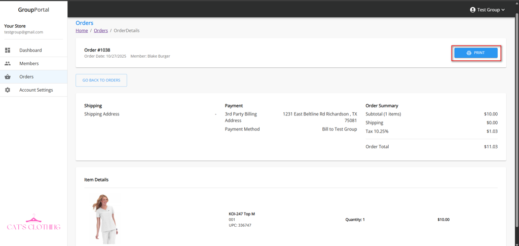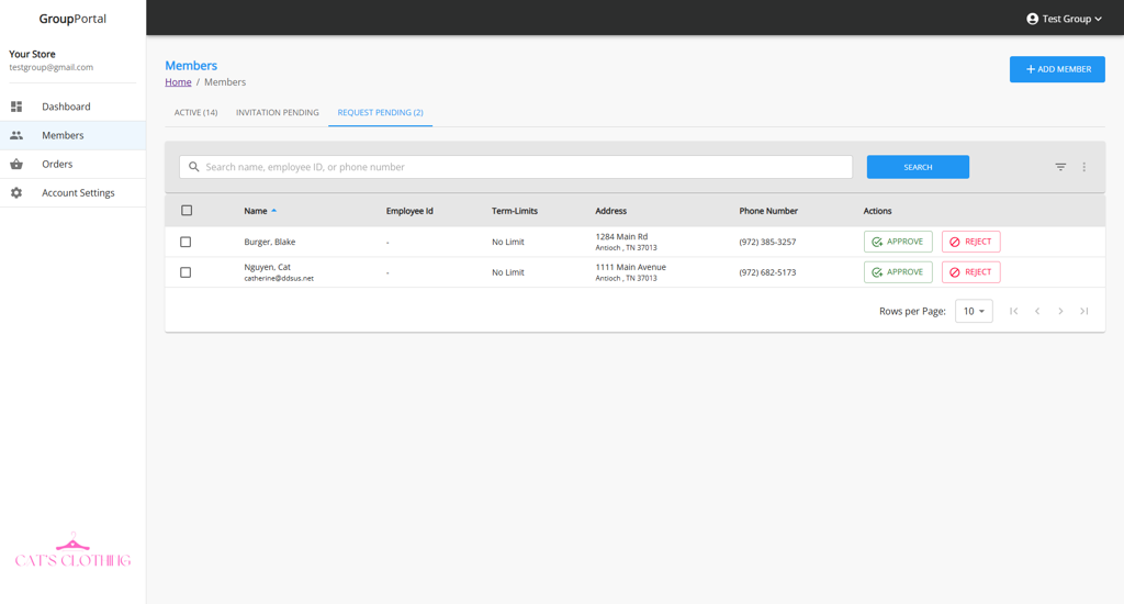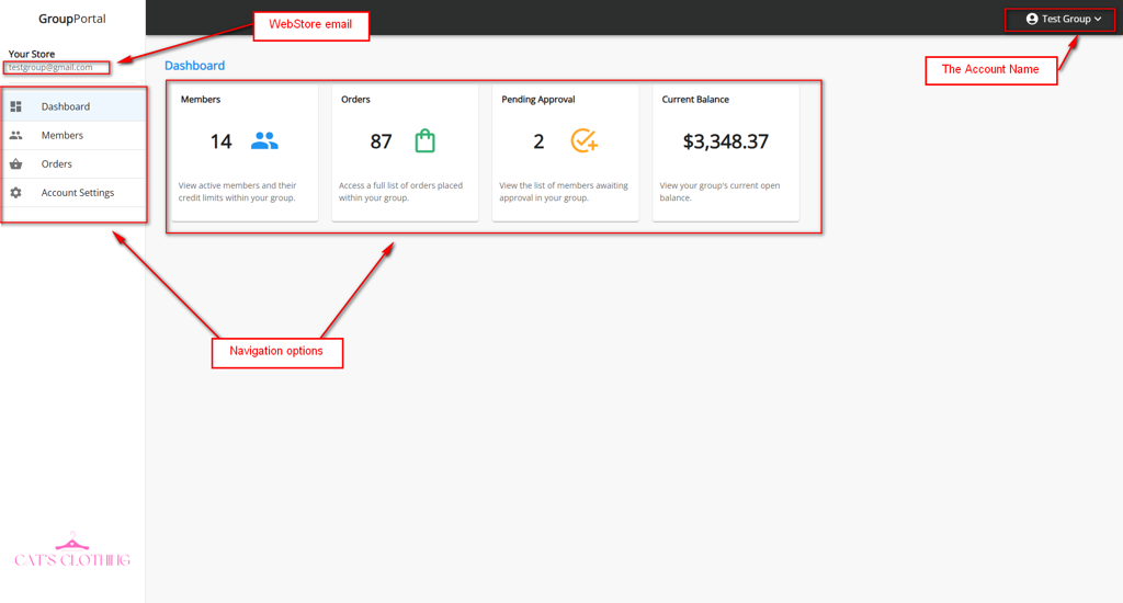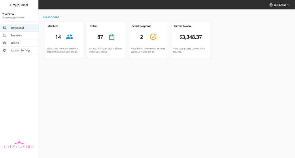 The portal is available to admin accounts – users who are authorized to manage members and orders within their group. Only group admins will have access to the GroupPortal through your WebStore.