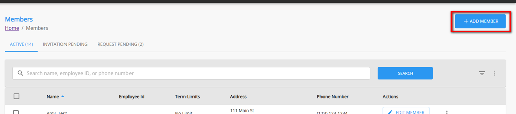 To add a member, click on the + ADD MEMBER button seen below. Fill in the required fields to create the member’s account.