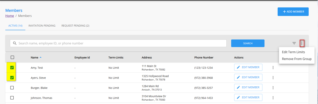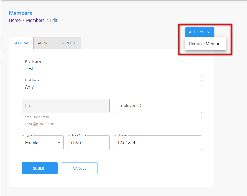 To remove a member from the edit screen, you can select Actions > Remove Member