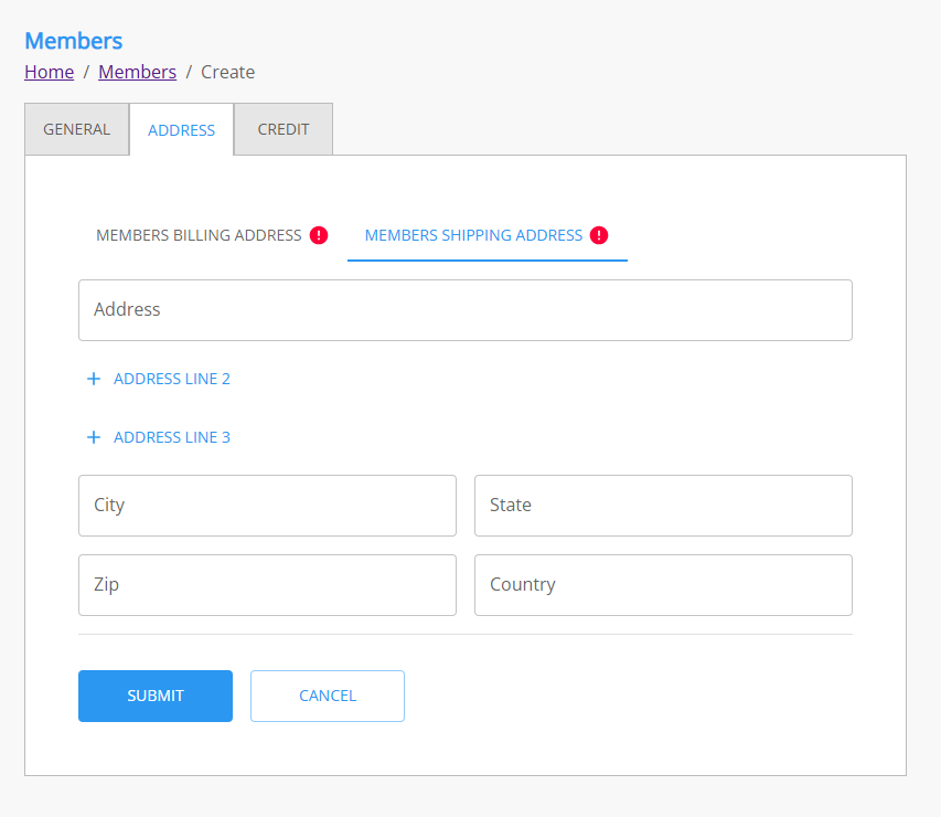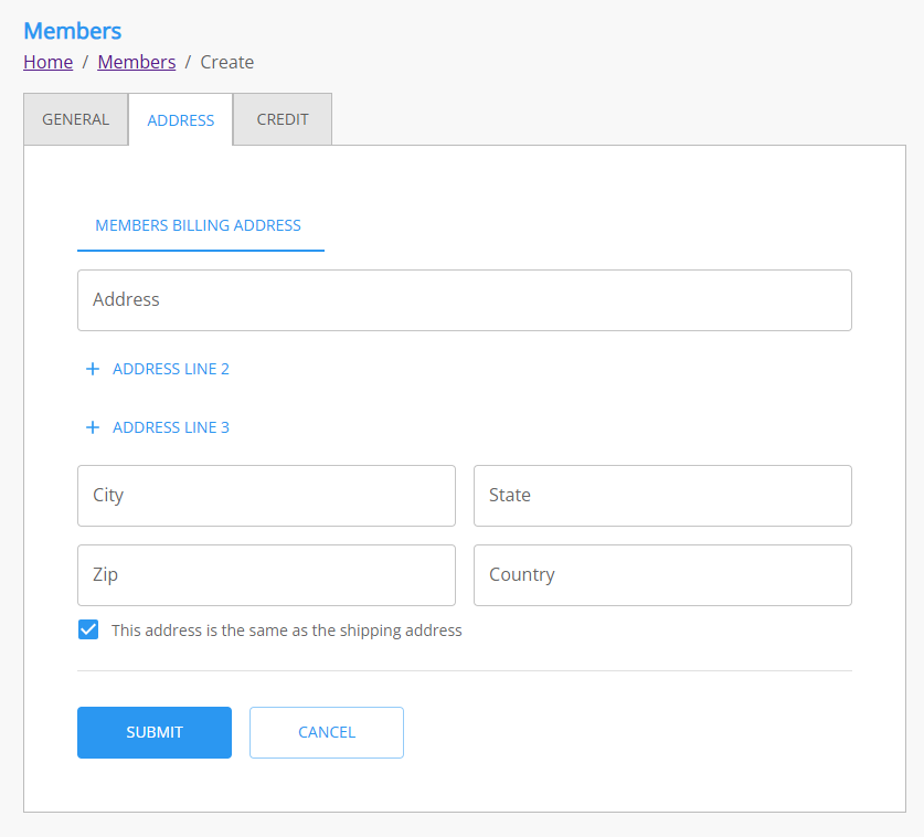 If it is not selected, the “Member’s Shipping Address” fields will appear for entry.