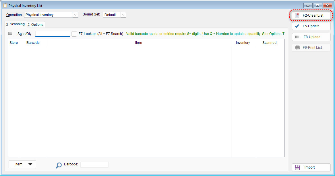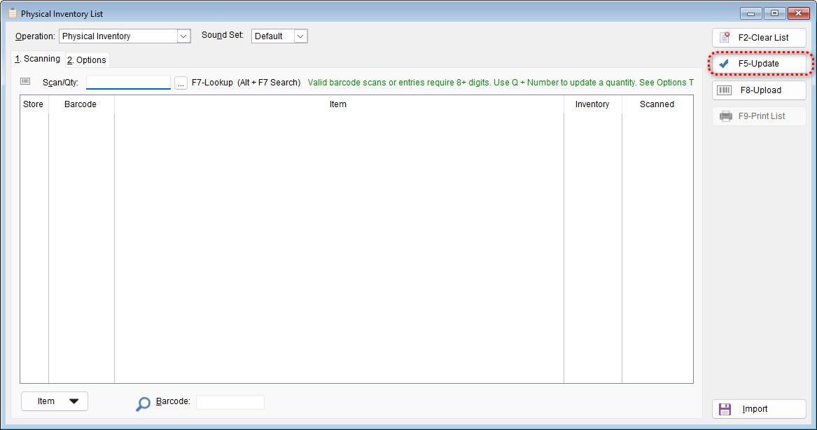Important Note:If the list has been cleared and no items are scanned, performing an update will set all stock quantities to zero. Use this function with caution to avoid unintentionally clearing your inventory.