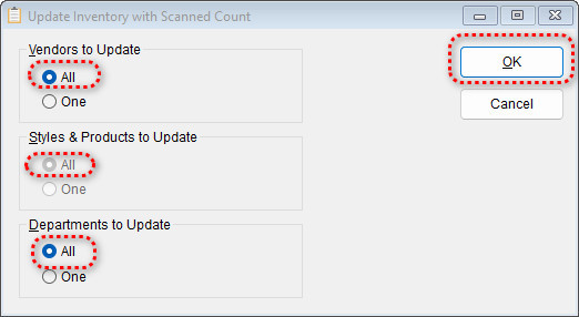 If you prefer to update your physical inventory in smaller segments, you may choose to update by Vendor, by Style & Product, or by Department rather than updating everything at once.