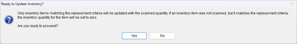 A dialog titled Ready to Update Inventory? will appear.