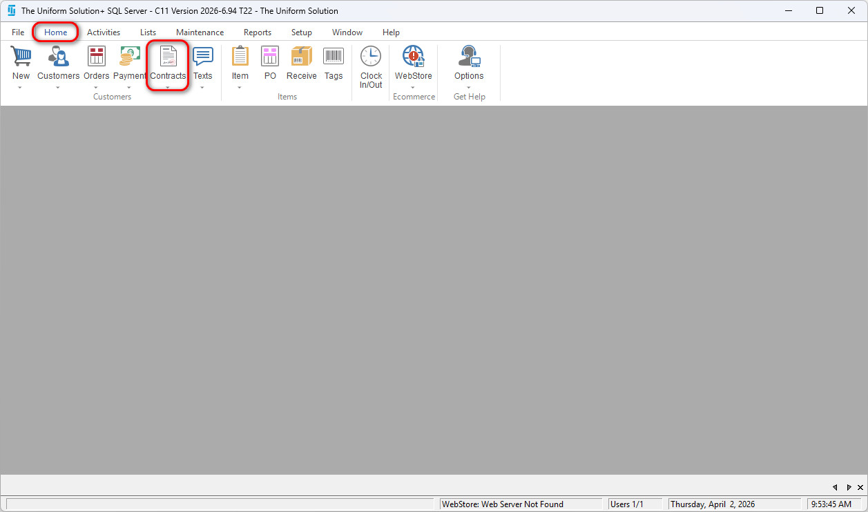 Select the Contract button (bottom left-hand corner) and choose New Contract.