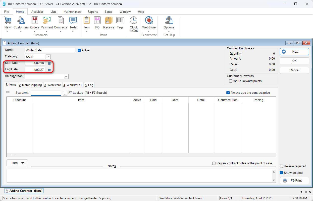 Once configured, items included in the contract will automatically ring up at the discounted price during the sale period.