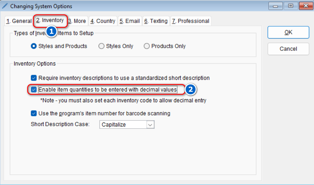 The program automatically defaults to not allow item quantities to be entered with decimal. If you’d like the ability to enter item quantities with decimal values,