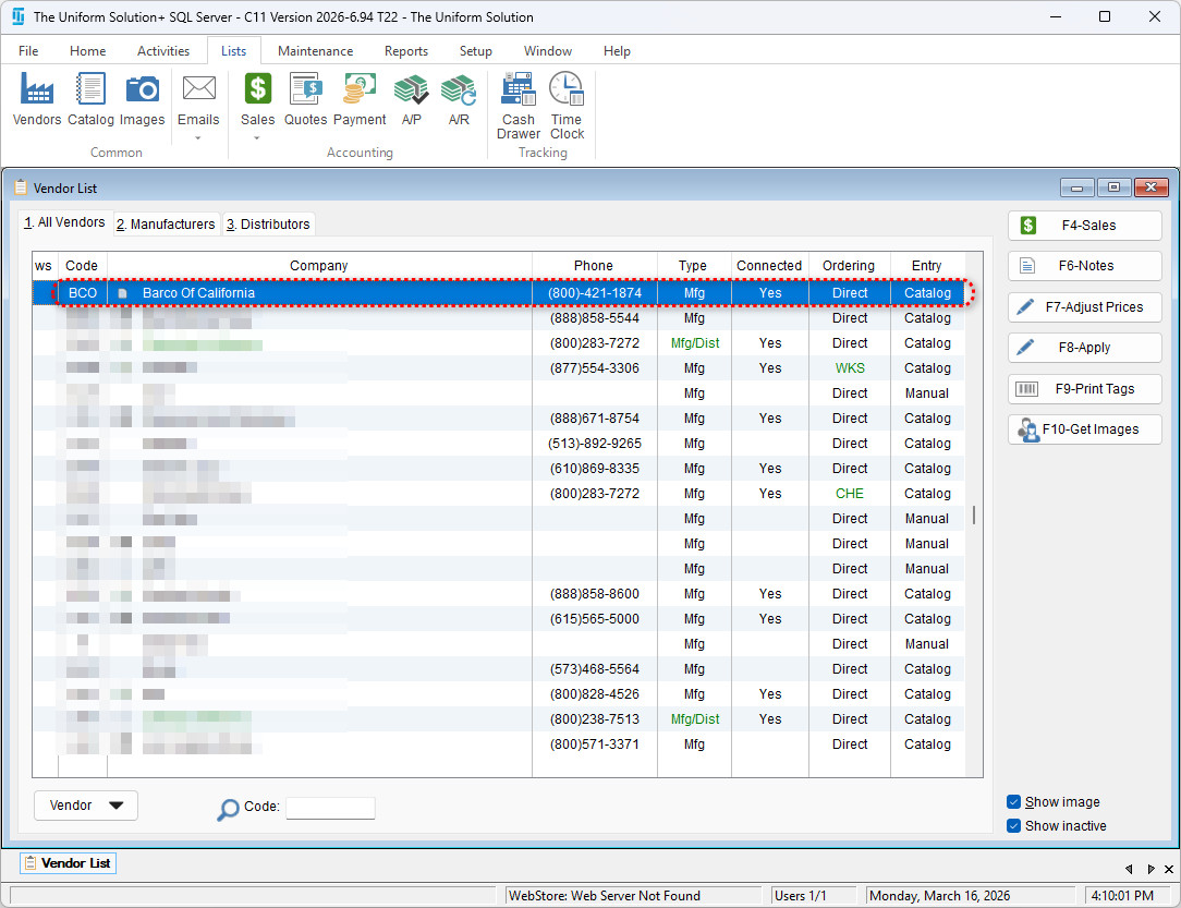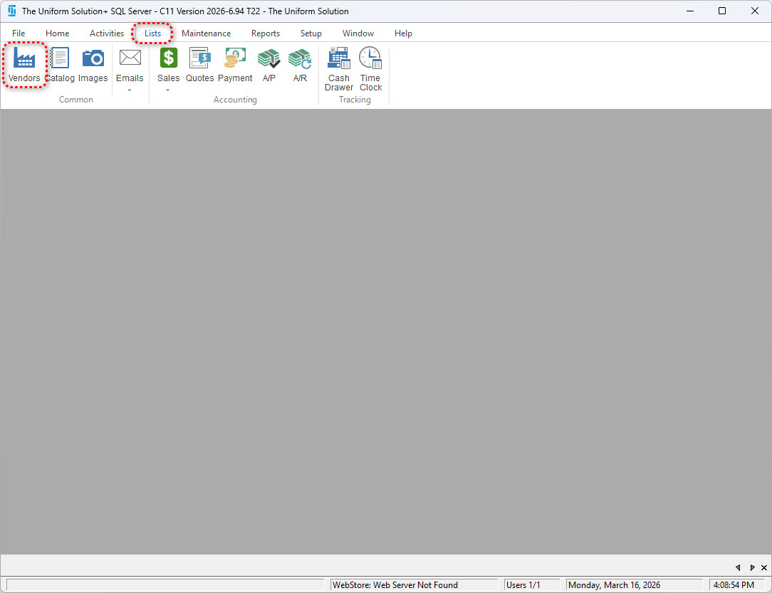 - Go to: Lists > Vendors