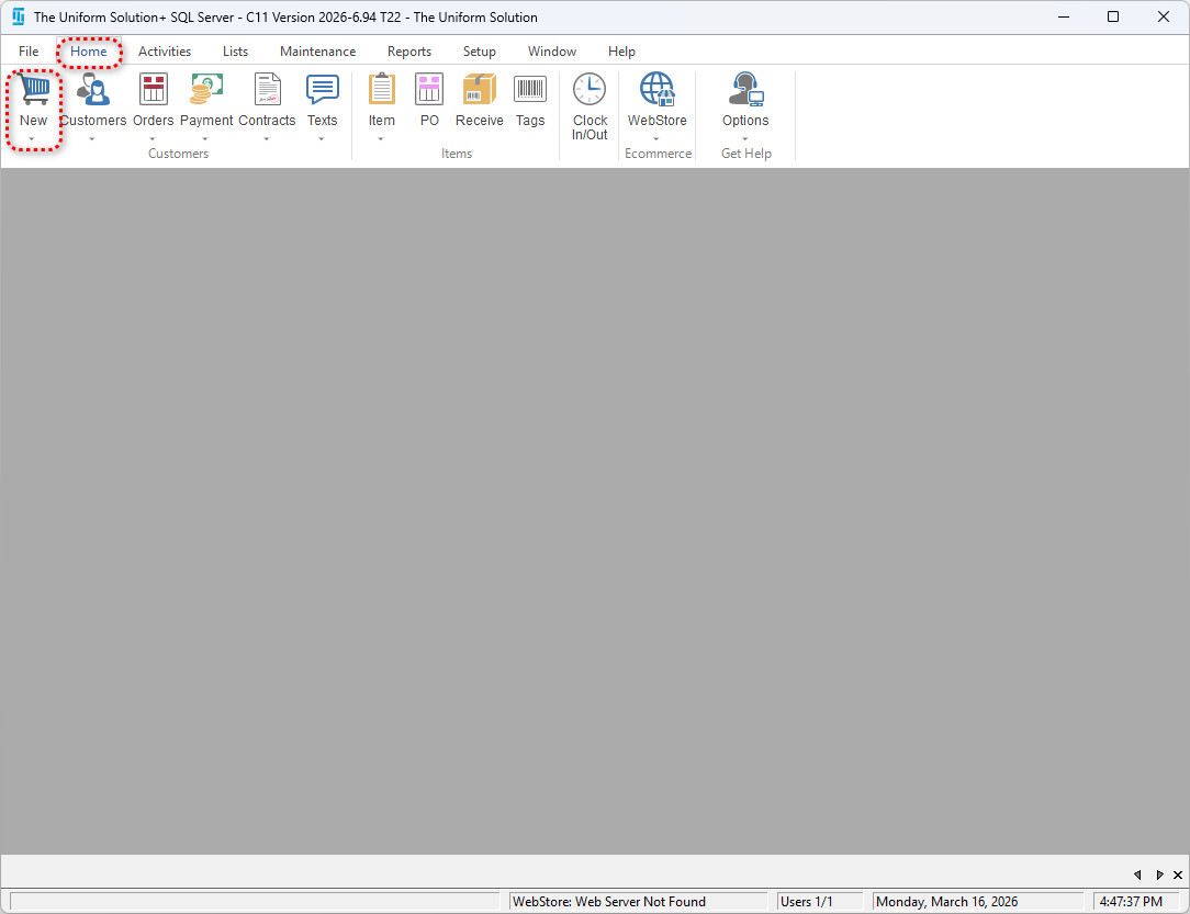 • Start a new sale – Home > New