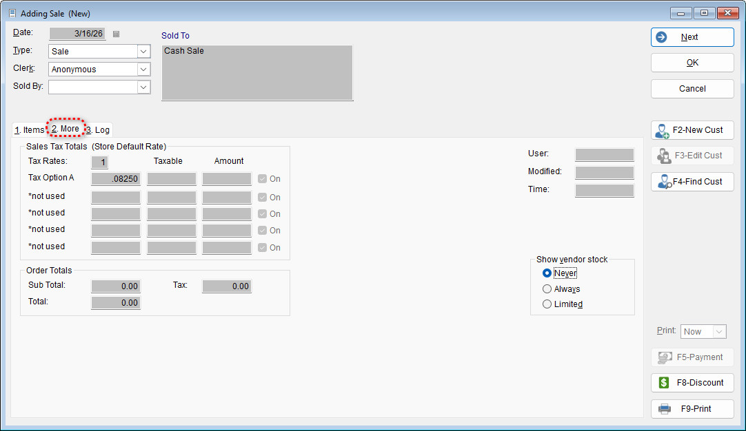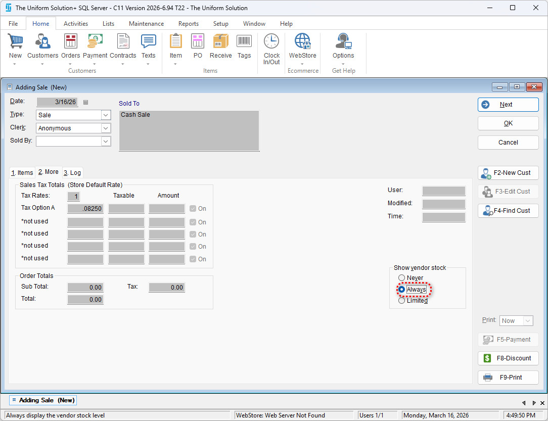 The program allows you to view vendor stock levels directly during a sale. This can be helpful when checking vendor availability before completing a transaction. Follow the steps below to enable and access vendor stock information.